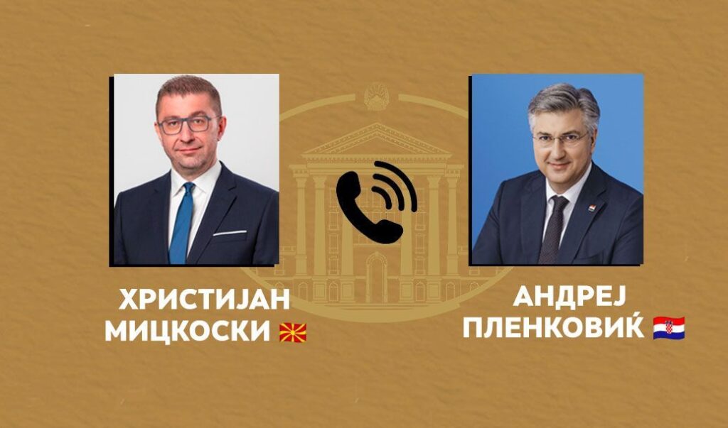 Претседателот на Македонската влада Христијан Мицкоски денеска оствари плодотворен телефонски разговор со хрватскиот премиер Андреј Пленковиќ.