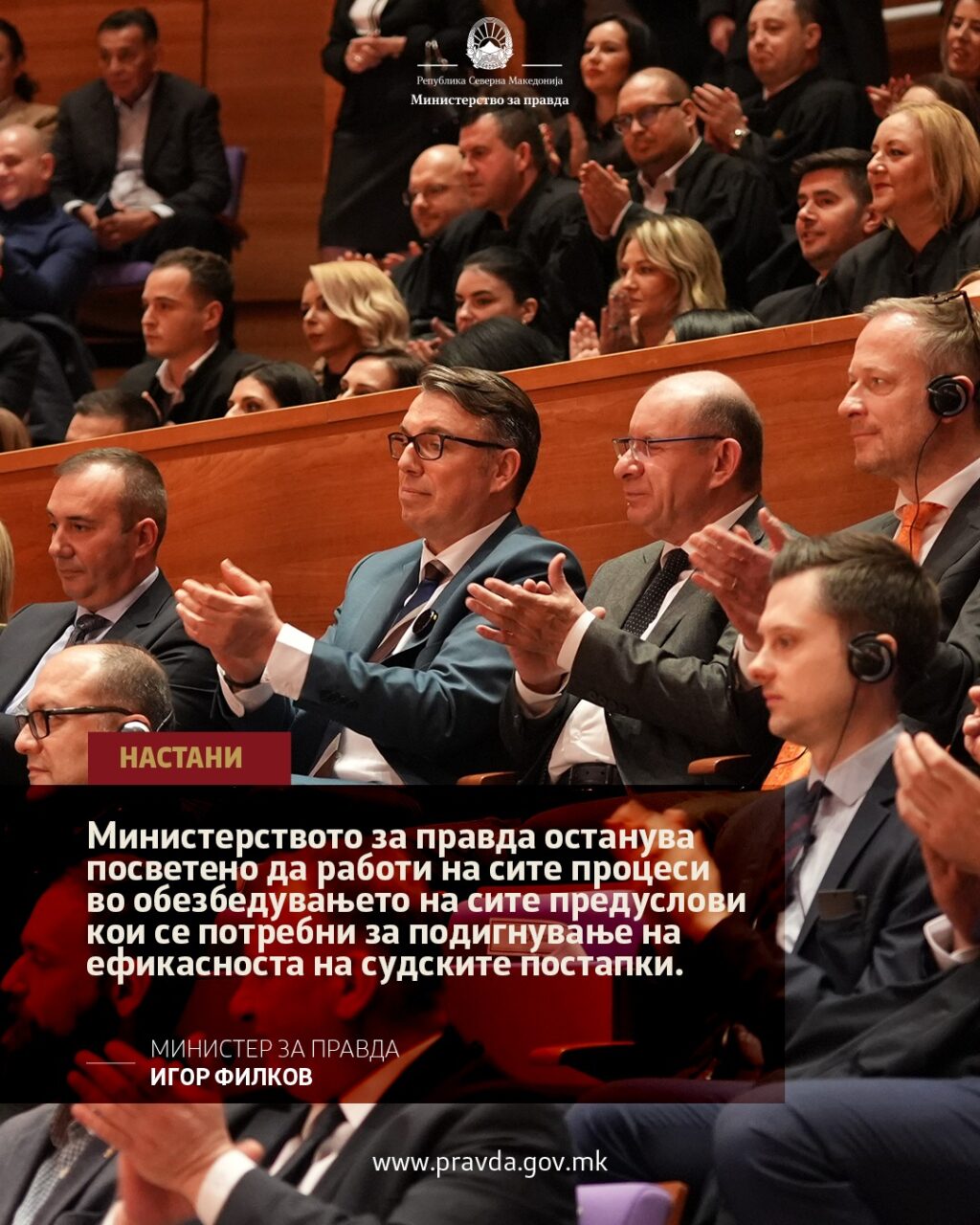 Министерството за правда останува посветено да работи на сите процеси во обезбедувањето на сите предуслови кои се потребни за подигнување на ефикасноста на судските постапки. Само со заеднички придонес ќе успееме да ја вратиме довербата на граѓаните во правосудните институции.