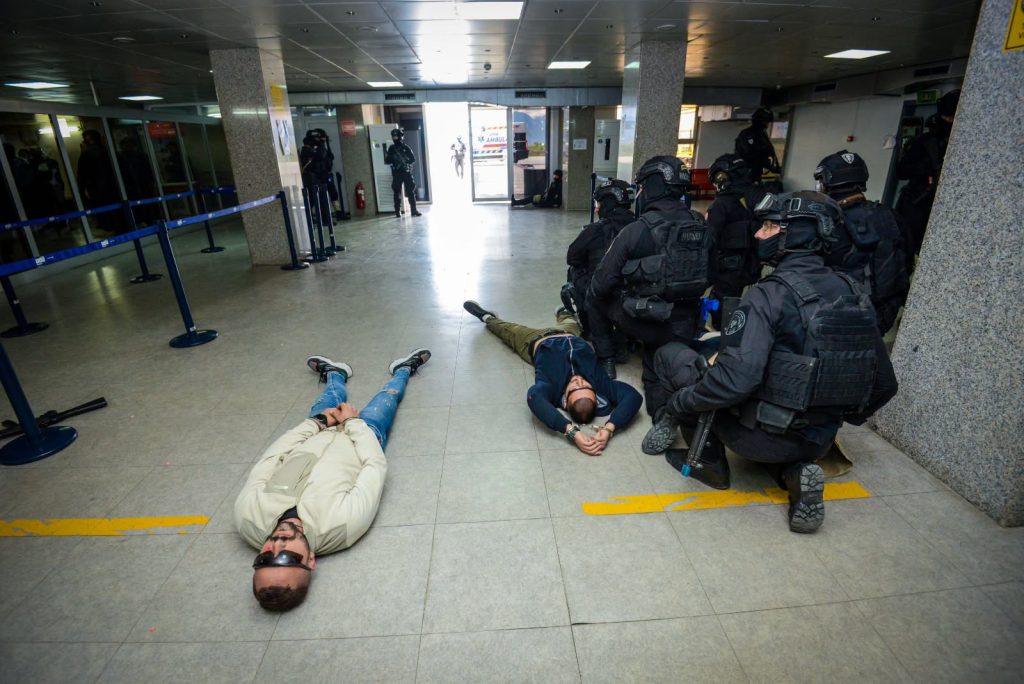 Сценариото на вежбата опфати повеќе фази, вклучително и диверзија со импровизирана експлозивна направа во ВИП зоната, координиран терористички напад со заложничка криза во терминалната зграда, активирање на кризен штаб, како и синхронизиран одговор на специјалните единици, евакуација, преговори и неутрализација на сторителите, проследени со медицинска интервенција и стабилизација на состојбата.