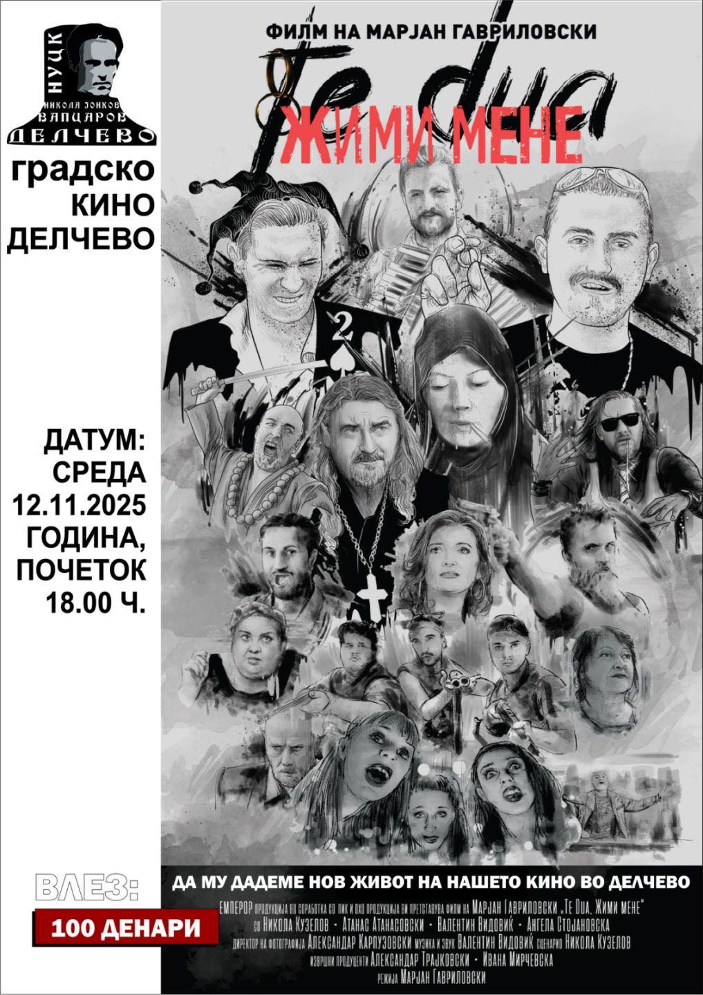Оваа среда на 12.11.2025 година публиката во Делчево ќе има можност да го проследи филмското остварување “TE DUA Жими мене” на нашиот режисер Марјан Гавриловски.