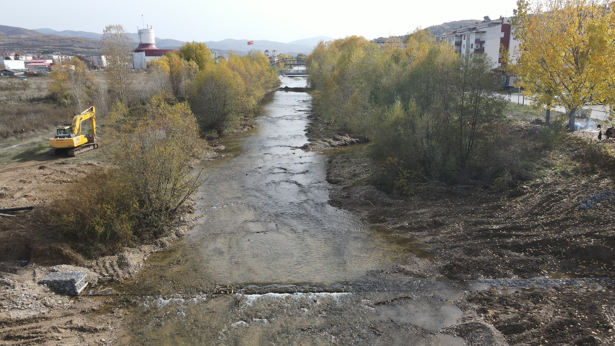По подолго време на застој повторно продолжува изградбата на регулацијата на коритото на реката Брегалница низ центарот на Делчево.